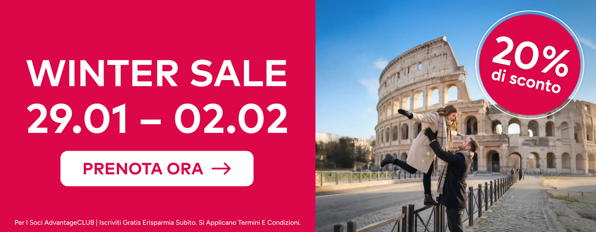 - La promozione è valida per prenotazioni effettuate tra il 29 gennaio 2026 alle ore 16:00 (CET) e il 2 febbraio 2026 alle ore 08:00 (CET).